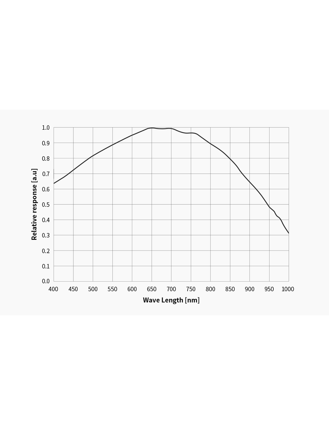 The heart of this monochrome camera is a Type 1/2.8 class CMOS sensor with 6.46 mm diagonal. This advanced sensor incorporates Sony's STARVIS technology that enables high-speed processing, low noise, and low power dissipation. STARVIS features a sensitivity of 2000 mV or more per 1 square µm and allows high image quality in the visible-light and near infrared light regions.