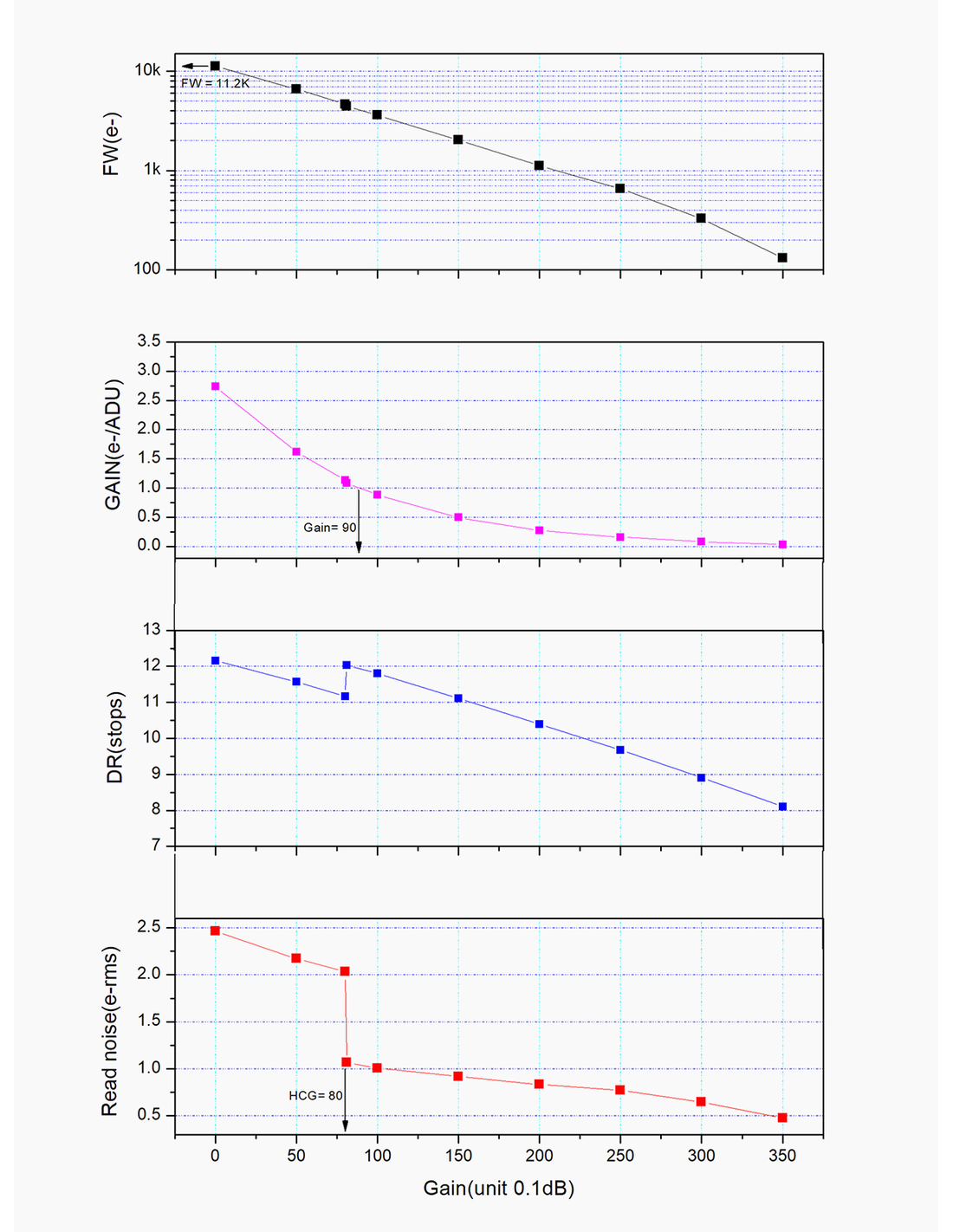 • Readout Noise: 0.47-2.46e (0.47e @45db gain)