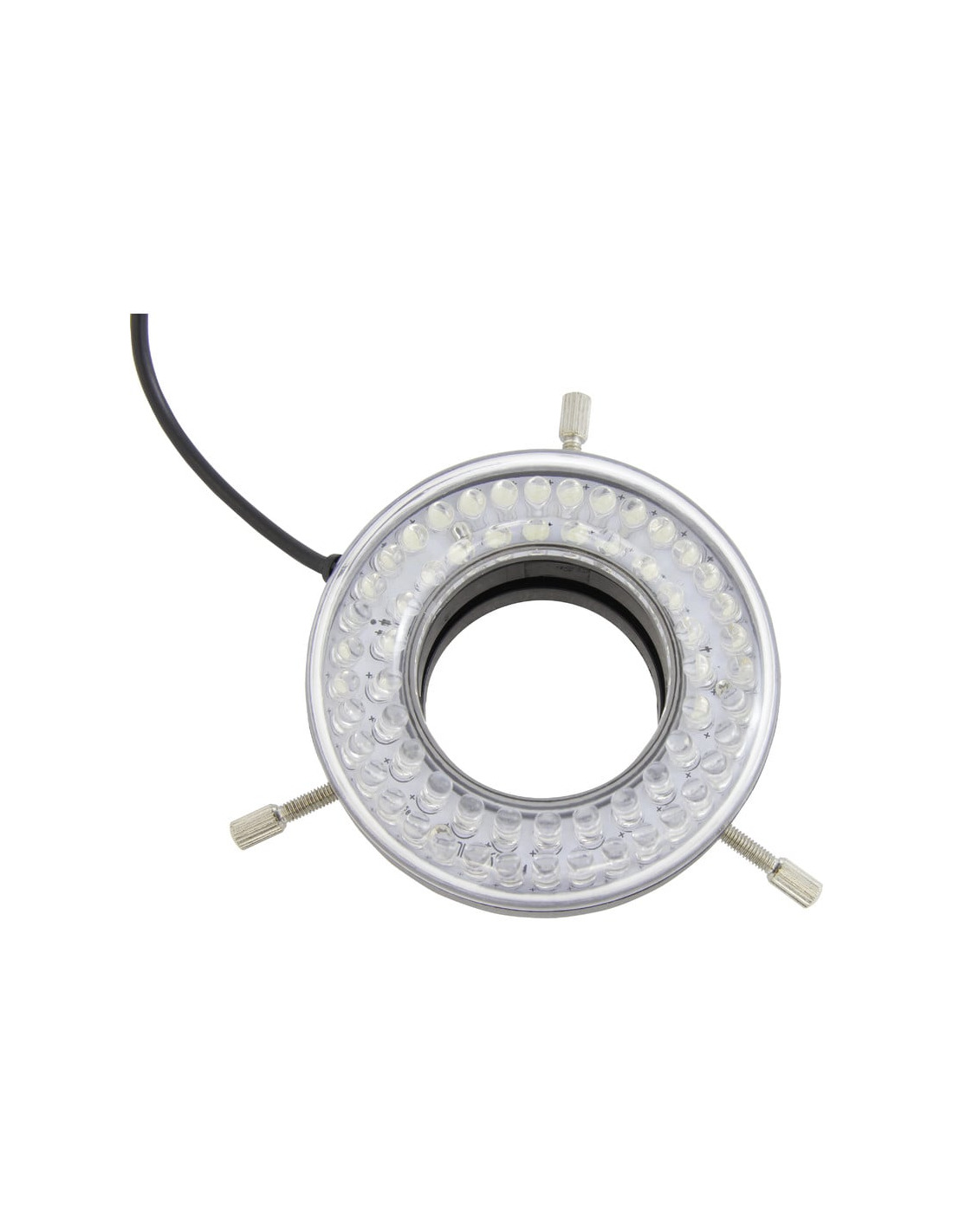 Installation using the three clamping screws is extremely straightforward, taking just a few seconds. The ring light fits onto the vast majority of stereomicroscopes - those with a diameter of up to 62mm. An additional adapter is included for those microscopes having an objective lens inner thread - allowing mounting onto them.