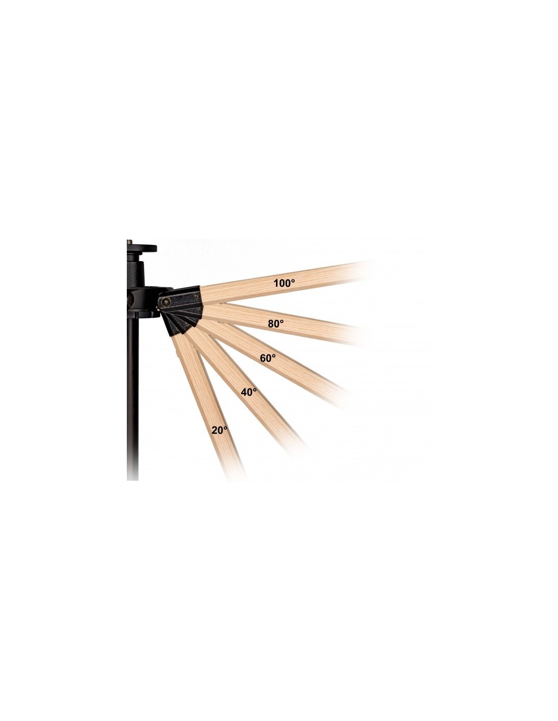 Thanks to the new stop system, it is possible to set angles of spread at approx. 20°, 40°, 60°, 80° and 100° by means of a wing catch. The stop system is designed in such a way that the specified loads of the tripods are also guaranteed at a maximum inclination of the tripod legs.