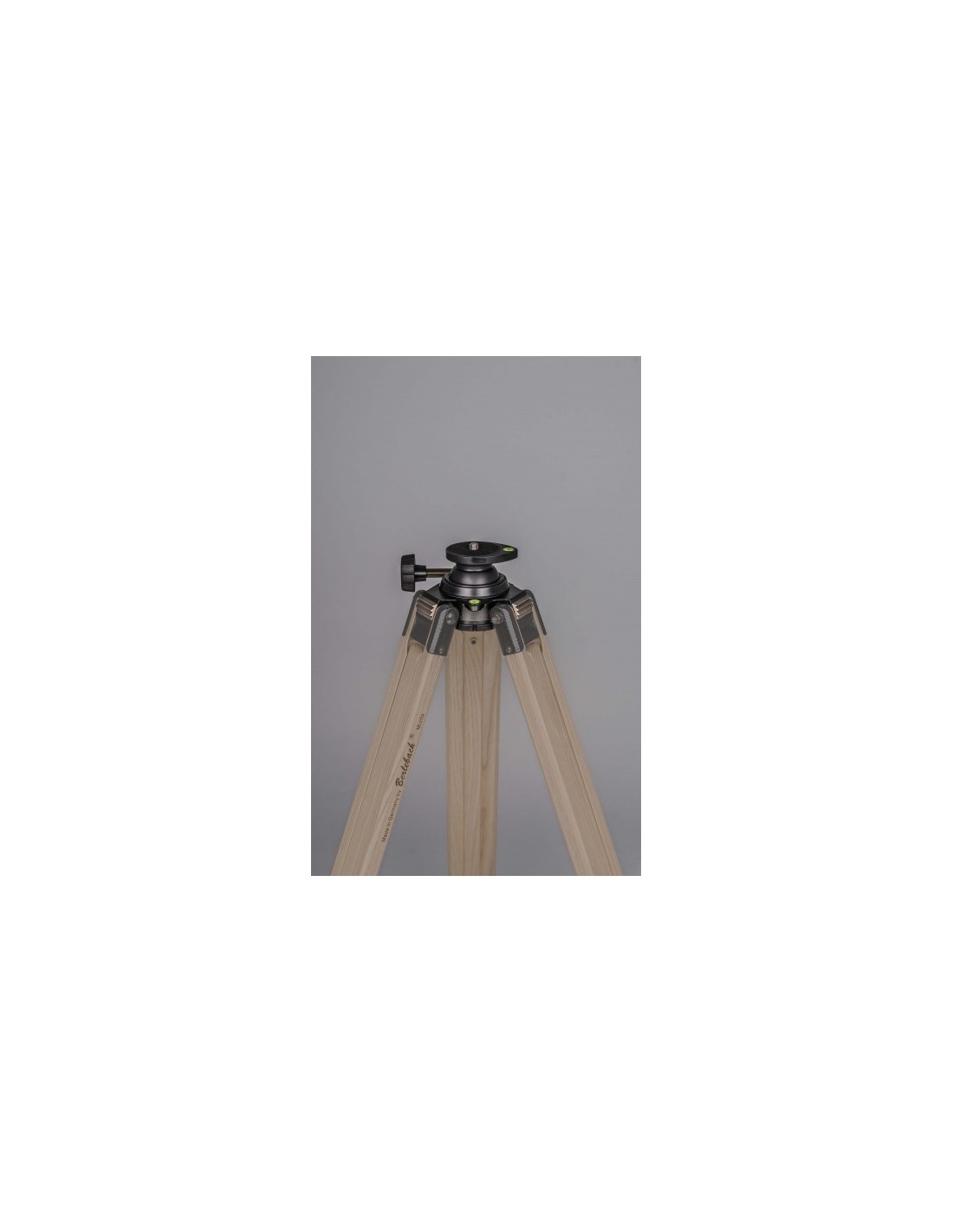 The tripod Report 733 is equipped with the module insert 3, i.e. with a permanently installed levelling ball, a diameter of 55mm and a spirit level.