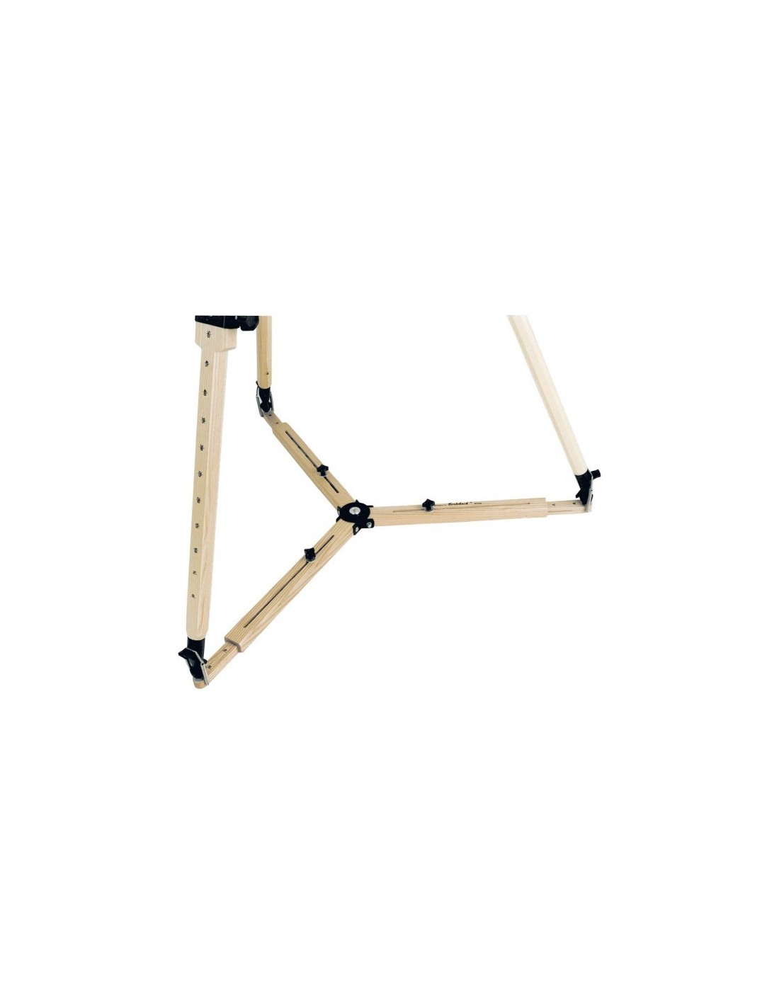 - The floor stay is ideal for holding the tripod legs in place when spread at extreme angles on smooth or sensitive flooring. Extension of the bracing arms is infinitely variable. Clear scale marks indicate the extension length. Rubber pads are provided for non-slip support. The centre piece also allows mounting of a camera or an accessories tray.