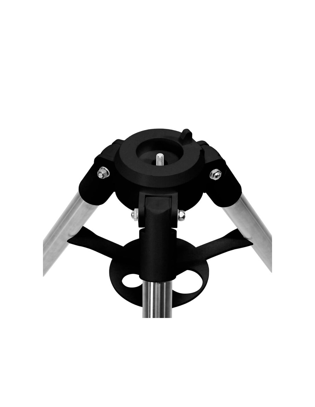 This stainless steel tripod provides a much more stable base for the telescope mount compared to models made from aluminium. It is exactly this steadiness that the quality of your observing ultimately depends on. The three steel legs are additionally reinforced by a metal plate giving you a tripod that will not wobble during your observing. The metal plate also has holes provided for holding your eyepieces during your observing sessions.